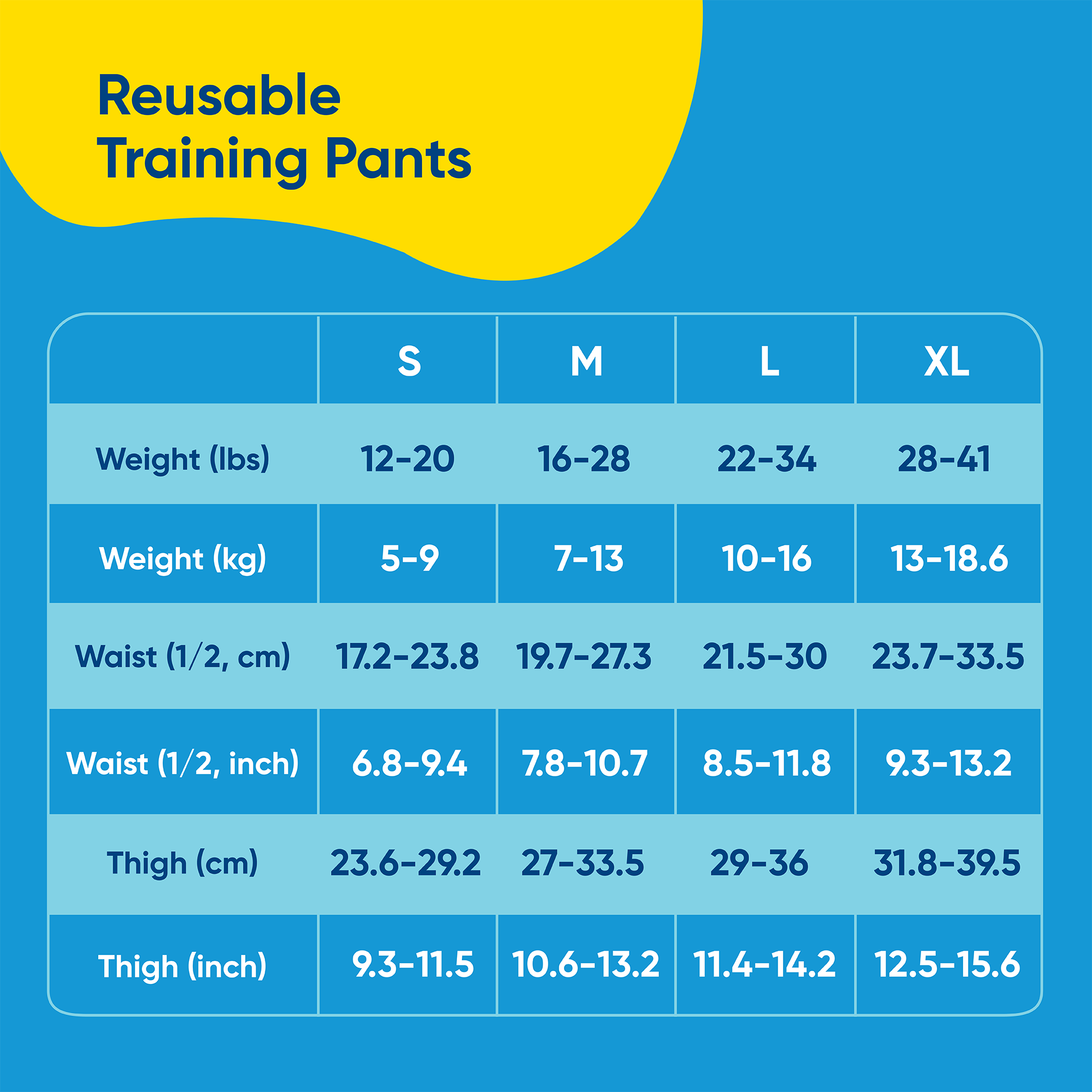 Our reusable training pants come in four sizes (small, medium, large and x-large), so you can select the perfect size for your baby. We know that single-use plastics can have a devastating impact on our environment—and reversing that impact means creating products that are gentle on your baby's skin and gentle on the planet.