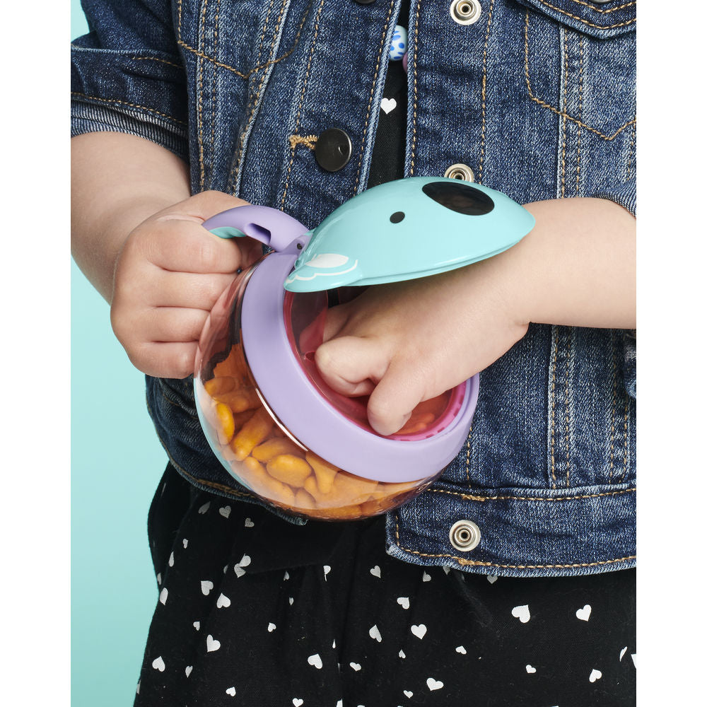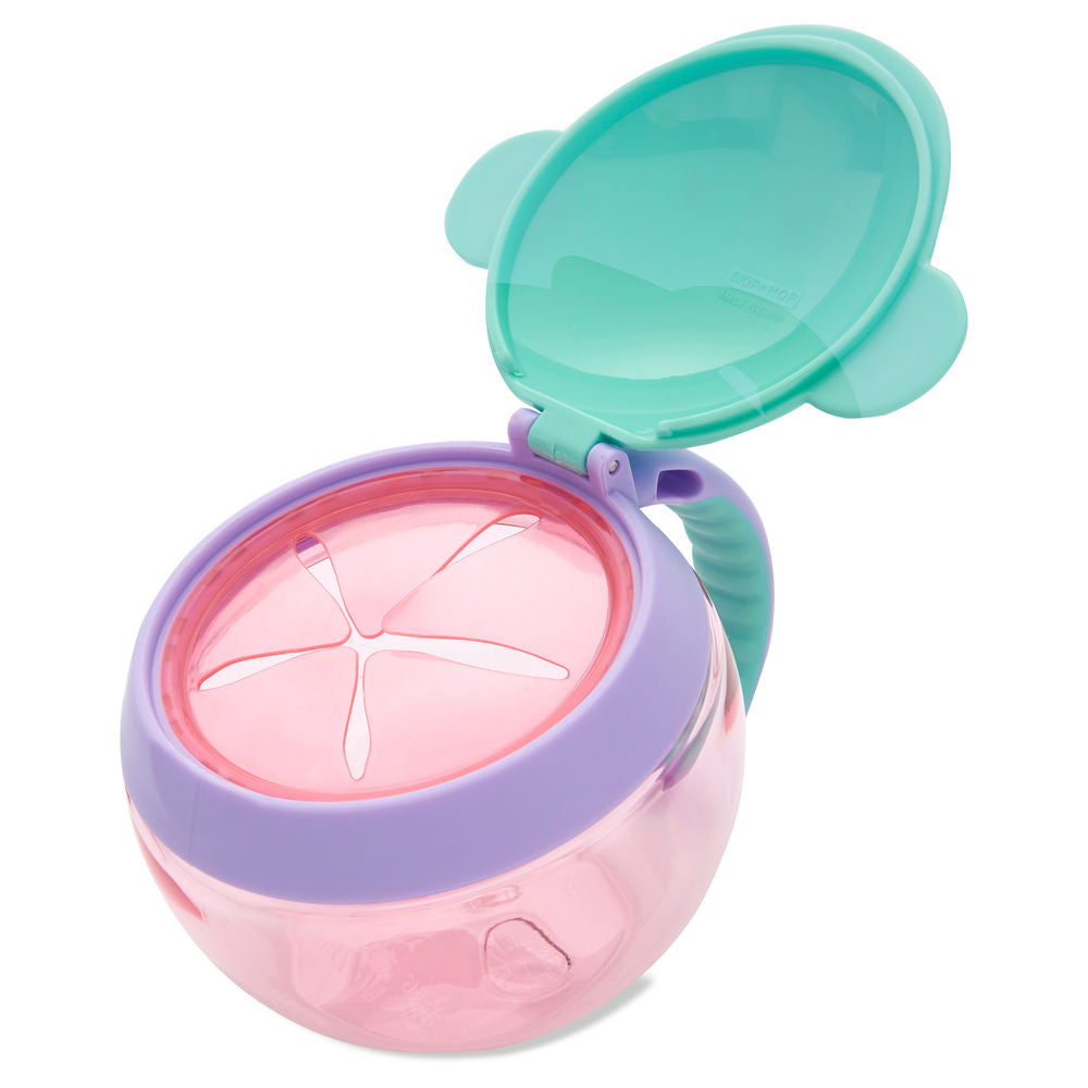 Perfect for toting munchies, this cute cup encourages independent snacking without the mess. The easy-grip handle is sized just right for little hands and the snap top lid ensures food stays fresh. The flexible inside opening keeps snacks from spilling out- even if it's tipped over so there is less mess and mum's bag stays crumb-free!