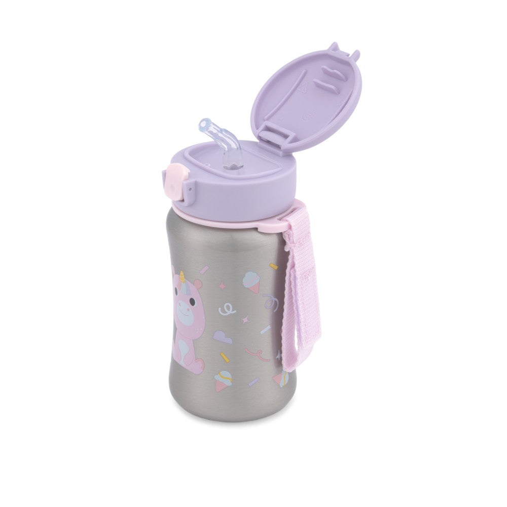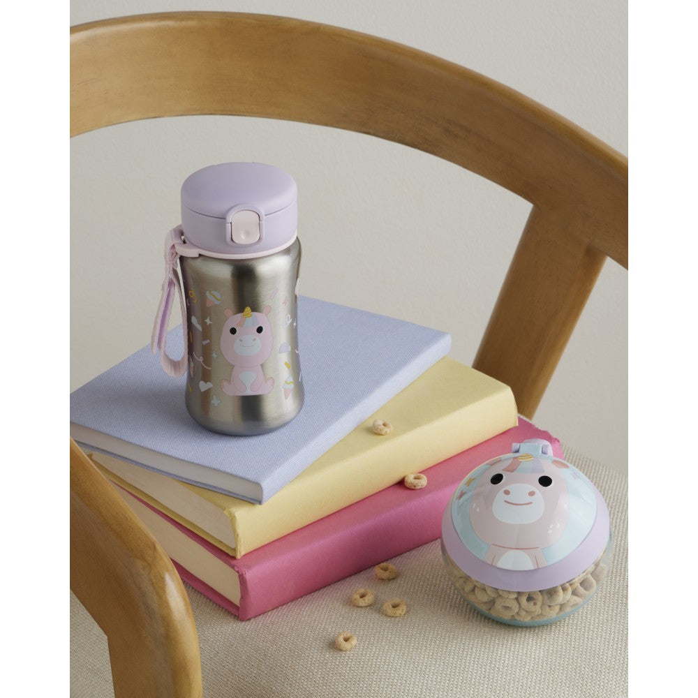 Meet your little one’s new bestie! Designed for adventurous kids on the go, Skip Hop's stainless steel water bottle keeps drinks cool wherever the day takes them. The pop-up lid keeps the flexible straw clean, while the cute animal characters are fun to collect. Grab it by the handy strap & you’re good to go!